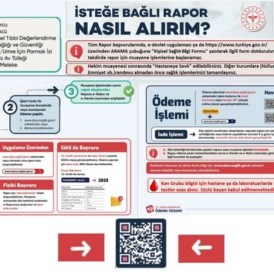Ehliyet, Spor, İşe Giriş ve Yivsiz Silah Raporları için e-devlet uygulaması üzerinden “ Kişisel Sağlık Bilgi Formu” doldurularak başvuru yapınız.